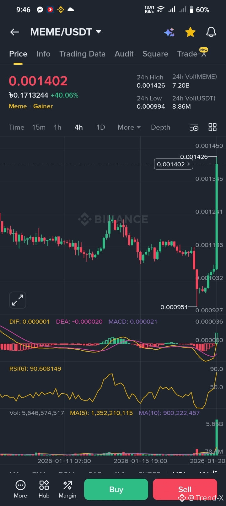 $MEME has just broken out strongly, with a gain of nearly 40% and a significant increase in trading volume, with the price climbing to the 0.00140 area at one point. This move confirms bullish momentum in a high timeframe.