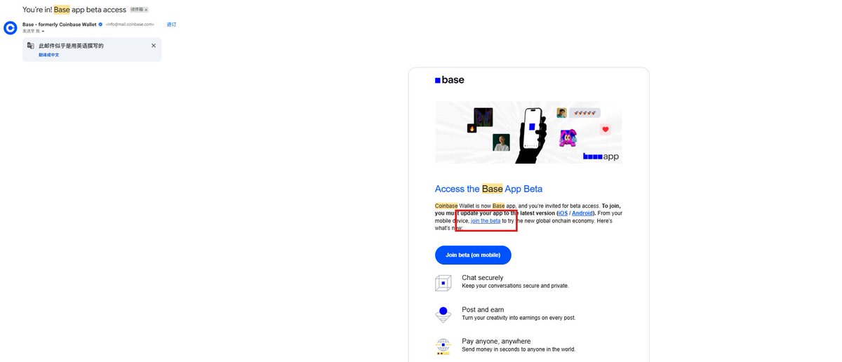 今晚上要买 $jesse的发现base app咋没有社交页面,是因为,你在网页申请了base app测试版后,要去你的邮件里找到join the beta,点进去才能打开,点其他任何地方都不行 这个邮件排版设计真的不好,很多人都看不到这里 @jessepollak @baseapp