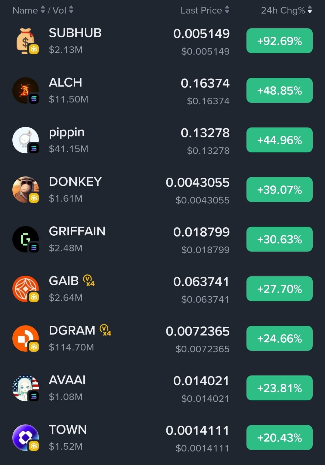 Hot cryptocurrencies are exploding across the board… SUBHUB +92%, ALCH +48%, DONKEY +39%—the meme coin sector is in chaos!👀⚡
