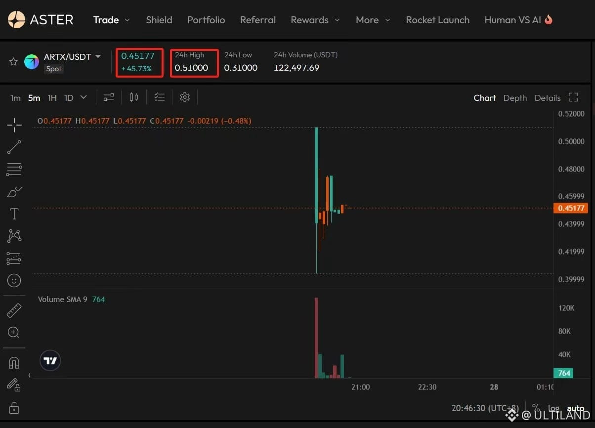 📈 Breaking News: $ARTX officially launched spot trading on @Aster_DEX, with the price soaring to $0.51!