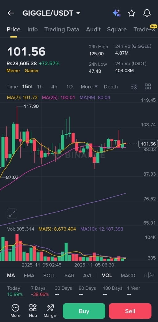 $GIGGLE /USDT - 价格暴涨!逢低买入!🚀📈 价格:101.56 USDT (+72.57%) 超高涨幅!🎭 从 47 美元飙升至 125 美元!📊 交易设置: 🟢买入区间:95-100 美元 🔴止损:90 美元 🎯目标价:115-120 美元 强劲的涨势!💥 - 绝佳的逢低买入机会! 💰 成交量高达 4.03 亿📈 - 看涨结构完好 测试 125 阻力位,有望突破🎯 点击此处交易 👉 $GIGGLE {alpha}(560x20d6015660b3fe52e6690a889b5c51f69902ce0e) #GIGGLE #Meme #gainer #MarketPullback #BTCDown100k