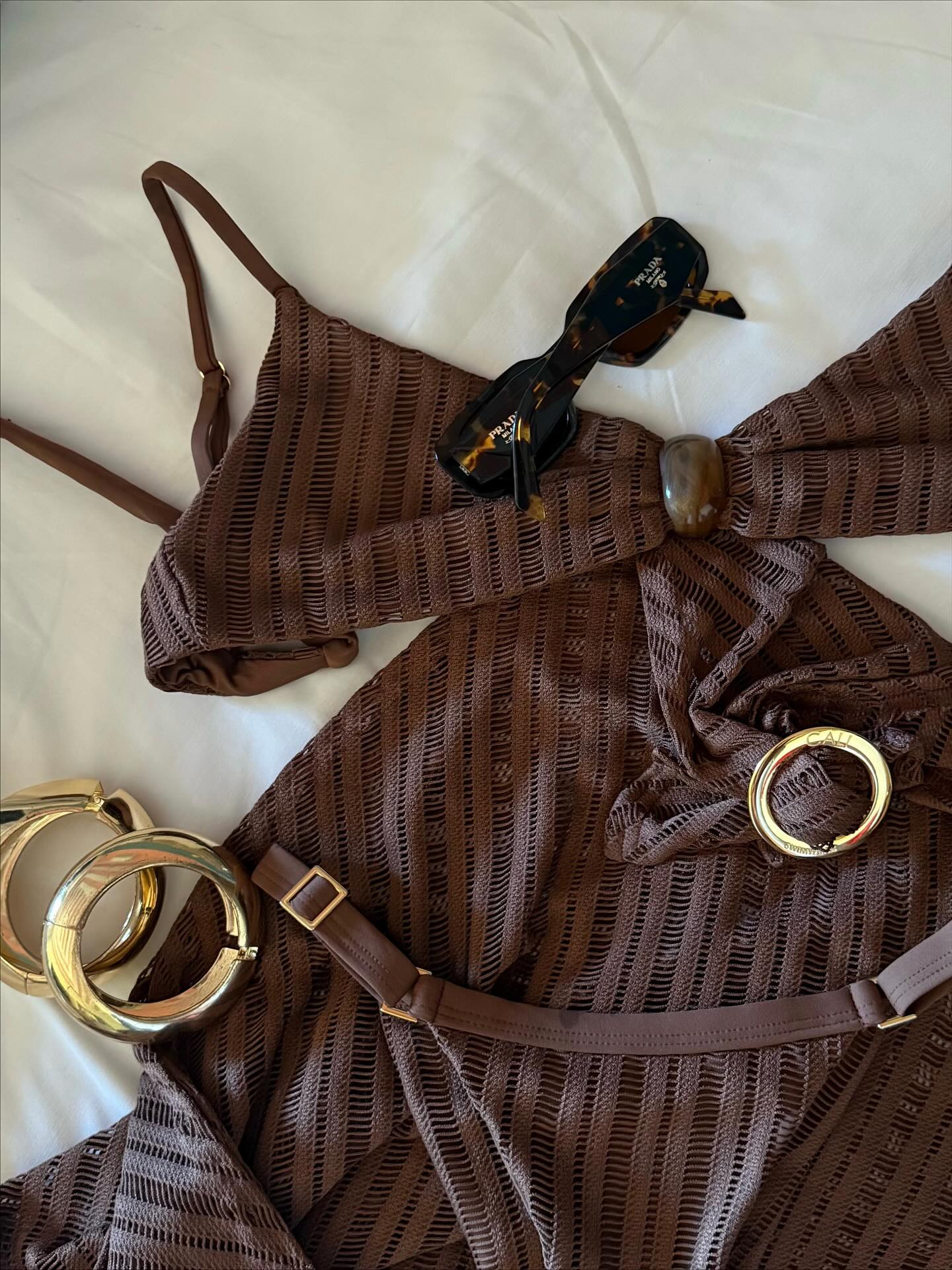 Sábado começando com praia, do jeito que eu amo! Biquíni e saia @califorsunbeachwear vivendo intensamente no marrom! 🤎 #beachwear