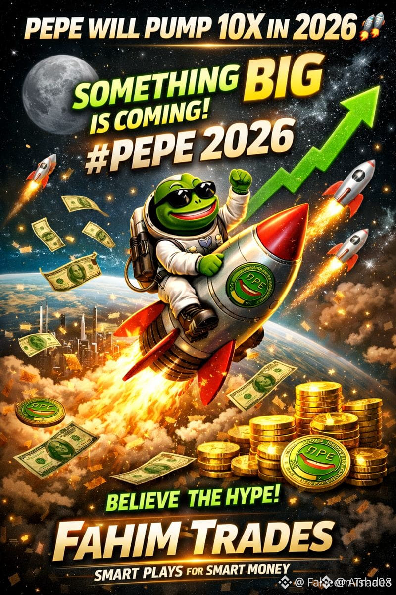 **$PEPE is set to surge 10 times in 2026 🚀🚀🚀** **#PEPE** is about to experience a **major** breakout 👀🐸 Savvy investors are watching closely. Patient holders will eventually reap the rewards. If you missed out on $PEPE now, you'll catch up later 🚀 Follow wise investment strategies. Follow **Fahim Trades** 📈 #MemeCoinSeason #Crypto2026to2030 #AltcoinGems #BullRunArmy #FahimTrades #WriteToEarn #CryptoLife