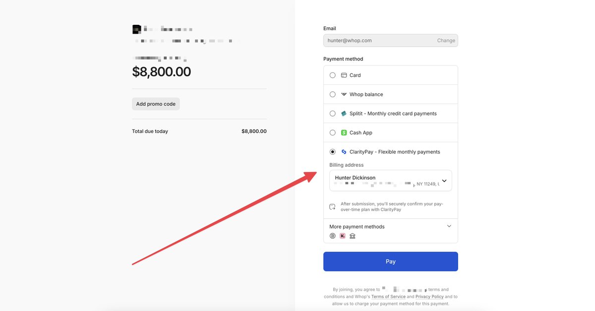 ClarityPay. Largest funding unlock since Splitit. Now available on Whop.