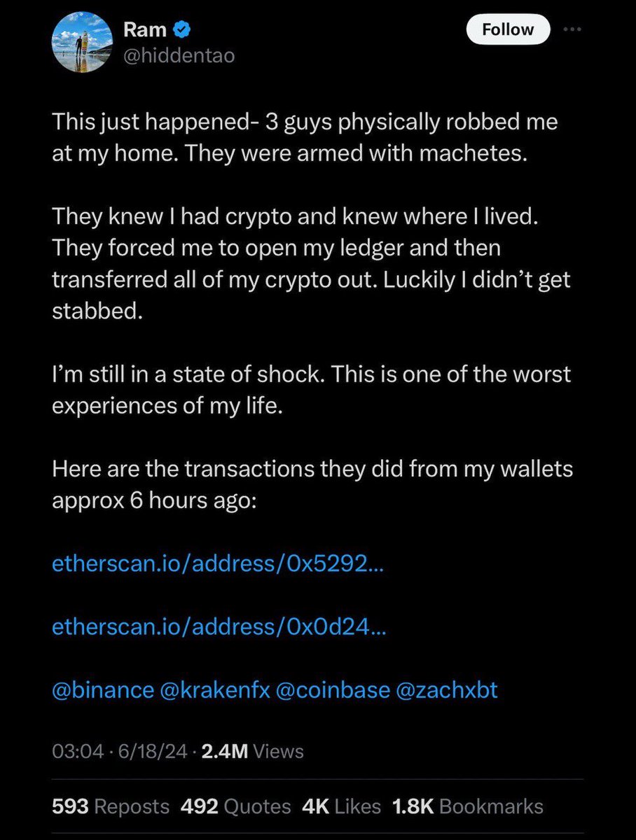 1/ 本周,一名美国受害者的 Ellipal 钱包被盗,损失了 305 万美元(120 万 XRP),一段视频在 YouTube 上疯传。 以下是被盗资金的最终去向以及类似盗窃案的重大教训。