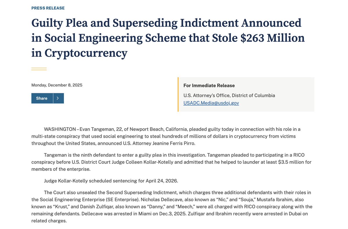 2024年6月,英国一名受害者在家中遭持枪抢劫,损失超过430万美元的加密资产。劫匪伪装成送货司机。 我很高兴地宣布,法里斯及其两名同伙已被判刑,伦敦警察厅追回了几乎全部被盗资金。 我此前已公布了我的调查报告,确认了法里斯的身份,并与受害者密切合作,将所有调查结果告知执法部门。 由于未成年人保护法的限制,案件的某些细节仍处于保密状态。 法院:谢菲尔德刑事法院 案件编号:01GD1223024