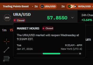 由于 @HyperliquidX 没有 HIP3 铀市场,我们被迫像牲畜一样在 @OstiumLabs 的正常交易时间内进行铀交易。