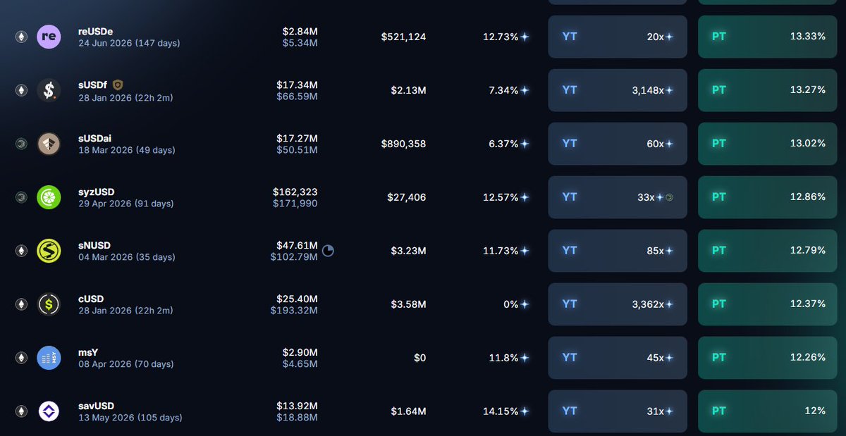 过去几个月我一直专注于贵金属投资,忽略了我的初心。 现在,我要重新开始! 🚨2026年1月稳定币大奖🚨 我将评选出收益最高、风险调整最佳、预期空投最高以及其他收益类别的策略。 查看获奖名单🧵👇 🏆最高基础收益率 请记住,高收益意味着高风险。 🥇 @OuroborosCap8 yzPP:59% 年化收益率(初级批次) 🥈 @OstiumLabs OLP:53.6%(交易对手金库) 🥉 @avantprotocol avUSDx:21%(初级批次) 尤其值得关注的是风险溢价的分配方式。 Avant 为其子基金提供 10% 的风险溢价,Yuzu 提供 15%。 Ostium 还会在 CR 低于 100% 时提供额外的费用补偿。 🏆风险调整策略最多 🥇 @aave 🤝 @ethena_labs "Aavethena" (10-18%) 🥈 @dolomite USD1 借贷 (10%) 🥉 @upshift_fi 在 @monad 上赚取 AUSD (11%) 注:虽然我非常喜欢 earnAUSD,因为 @withAUSD 是一个很棒的稳定币,但该金库现在参与了多种策略,承担的风险远高于单纯持有或借出 AUSD。 🏆最佳 Pendle 投资机会 🥇 @re reUSDe:147 天,13%(次级再保险) 🥈 @USDai_Official sUSDai:49 天,13%(99% 国库券) 🥉 @OuroborosCap8 syzUSD:91 天,12.8%(高级再保险) 这些资产的收益率完全取决于我个人的意愿,也就是说,我不会推荐任何我认为风险过高的资产。 reUSDe 并非严格意义上的次级再保险。Re Capital 实际上拥有约 7000 万美元的次级再保险,这些再保险与该协议协同运作。因此,我并不像担心其他次级再保险那样担心 reUSDe 的风险。 🏆第一季最佳空投机会 🥇 @3janexyz 链上无担保信用额度 🥈 @Neutrl 场外交易基差 🥉 @infiniFi 期限分层 实际上有很多项目都符合这个条件,所以只选三个不太公平。 我的目标是挑选出那些具有最独特价值主张、与众不同的项目。 但即便如此,@USDai_Official 也值得关注。@capmoney_ 和 @strata_fi 凭借其独特的优势,应该能够脱颖而出,成为各自领域内的领军者。 🏆最佳 Solana 稳定币收益 🥇 @HastraFi 在 @kamino 平台上:年化收益率 24%,HELOC 稳定币 🥈 @solsticefi 在 @ExponentFinance 平台上:固定收益率 12% 🥉 @onrefinance LP 在 Exponent 平台上:收益率 16% + 积分 需要注意的是,这些都是比较特殊的稳定币(Solana 平台有不少稳定币)。 Hastra 的 PRIME 是一个由 HELOC 支持的稳定币。Solstice 由基准利率支持,因此收益相对稳定,但最近其积分计算方面出现了一些问题。不过,由于 PT 只是在做反向操作,所以无需过于担心。 Onre 也做再保险,但我对它了解不多,所以无法断言它的风险调整方式是否与其他公司类似。 还有 SyrupUSDC 的循环再保险,但最近它的利率波动比 PRIME 的循环再保险更大。 各位,我今天就讲到这里了。 最好的超额收益总是在道场中。
