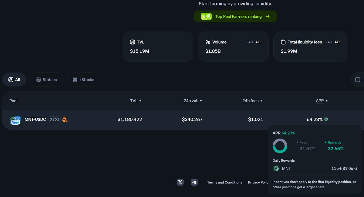 我使用 @byreal_io 在 @solana 上做 LP 股票已经有一段时间了,体验非常棒。 我的 QQQx 仓位表现最为稳定(>50%),XAUT 和 SPYx 的仓位表现也不错。 我之前多次解释过如何使用隐含波动率 (IV) 来估算预期收益 (EV+) 的范围,并考虑预期盈亏平衡点 (IL)。 此外,由于 Byreal 是与 @Mantle_Official 合作的交易所,他们最近还推出了一个 MNT 资金池,并提供相当丰厚的奖励。 这些奖励将在 28 天后结束。 注:我既是 Byreal xStocks 的活跃用户,也是 Mantle 的推广大使。