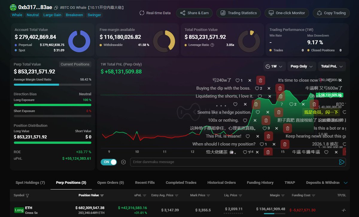 Scale is scale. 🐋 This whale (the strategy's counterparty) has netted $18,714,114 in the past 7 days. While most were on the sidelines, this trader was 100% long on Bitcoin and Ethereum, and with a massive position. 👉Holding $208 million worth of Bitcoin and $99 million worth of Ethereum, a 20x return. Following "smart money" doesn't mean copying every trade; it's about understanding their level of confidence. Follow this address in real-time at @Hyperbotai.