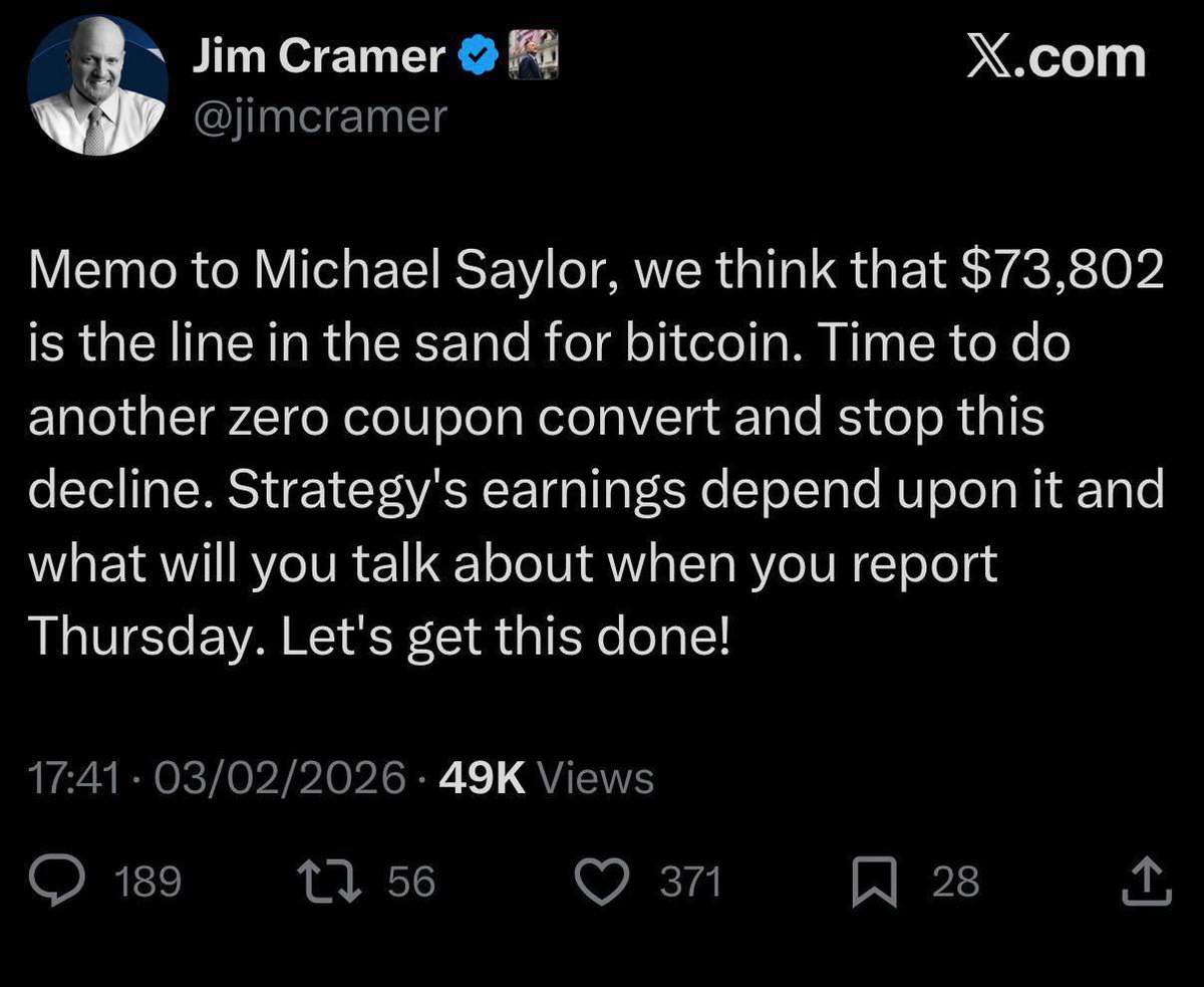 吉姆·克莱默嘲讽比特币和加密货币持有者