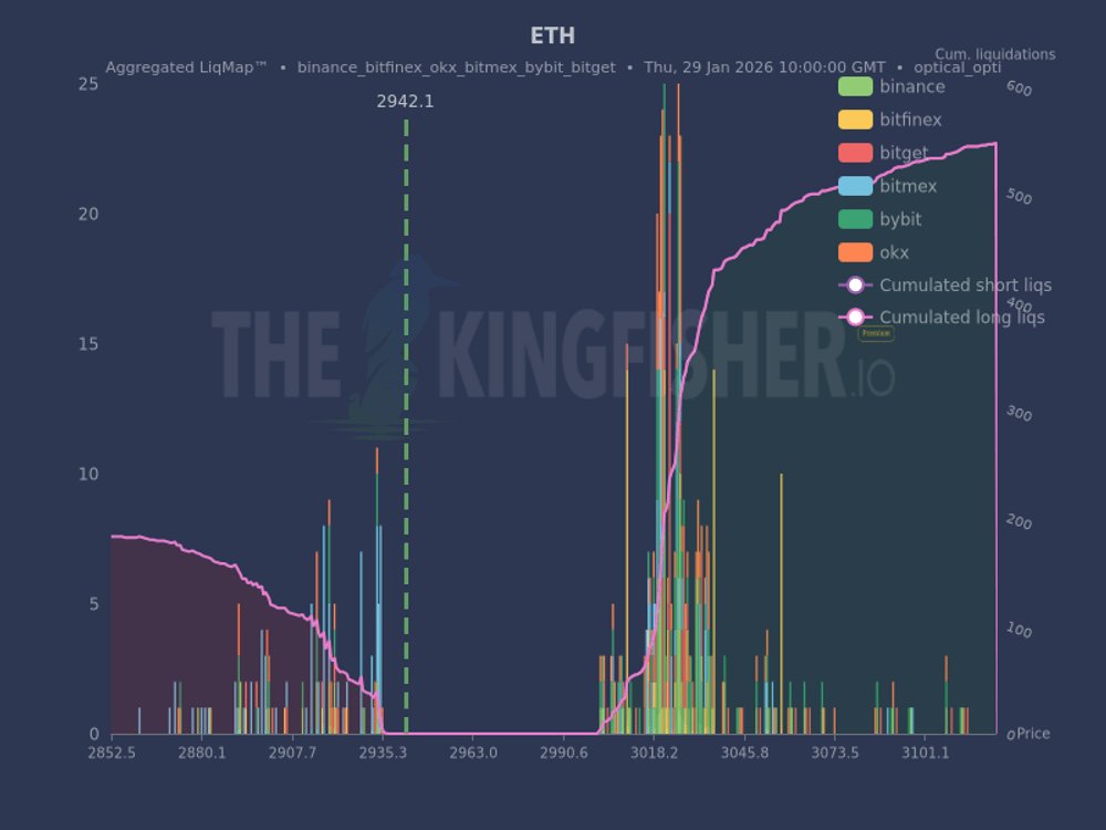 🎣 Liq cluster: $ETH shows a clear imbalance of heavy short positions.