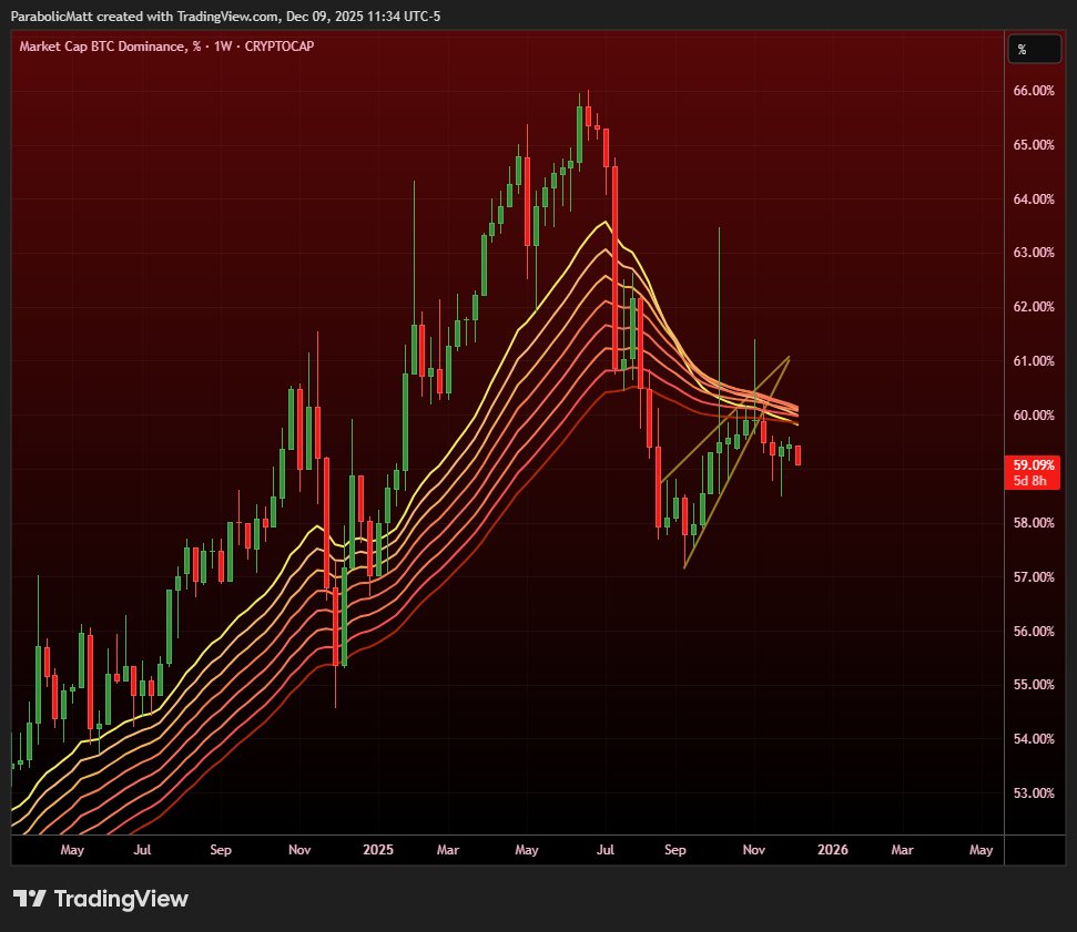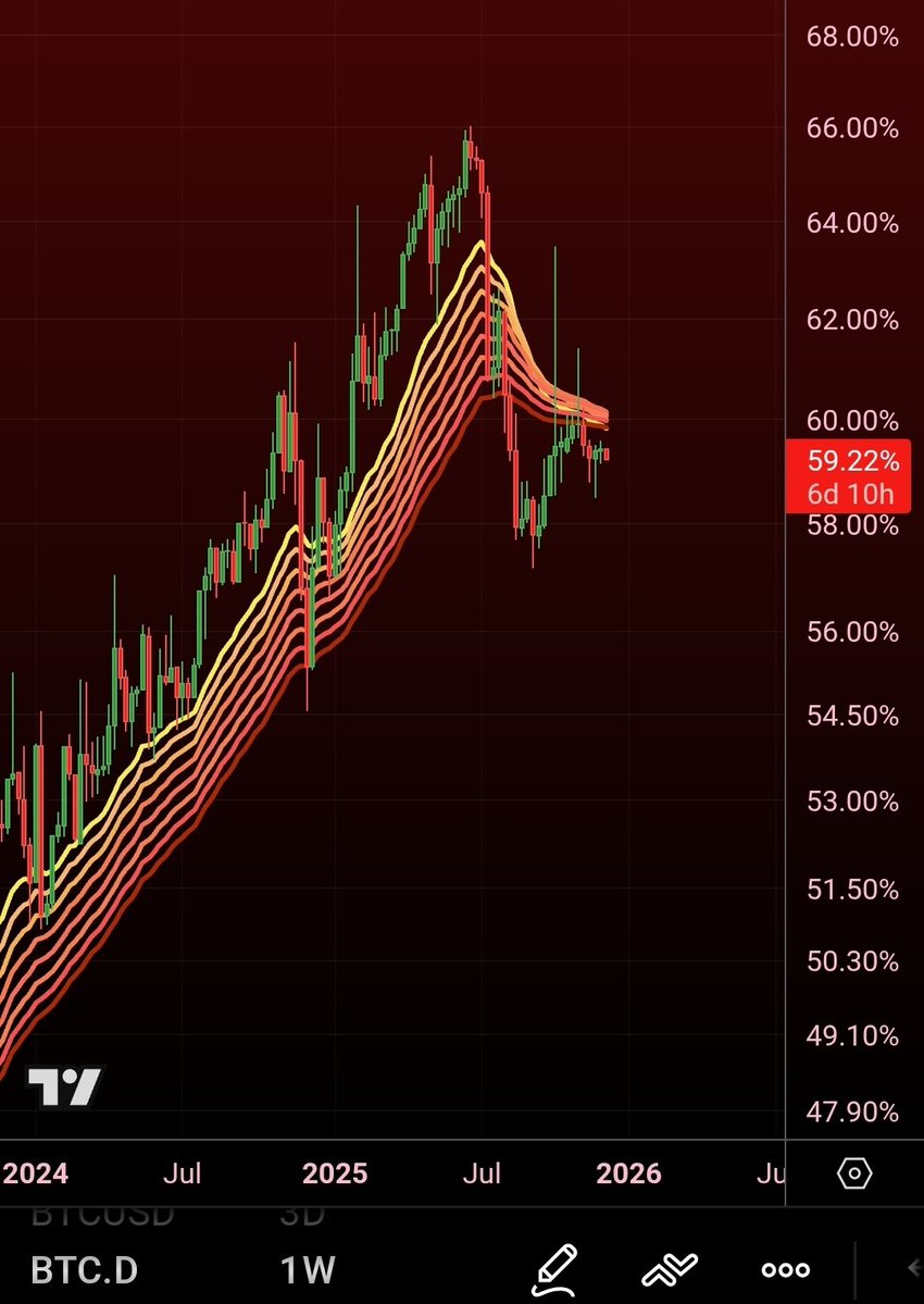 #BTC Dominance: The weekly EMA band is rolling for the first time since February 2021.