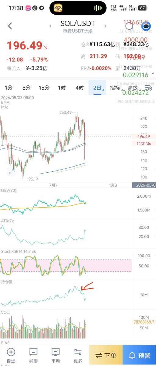 前段时间讲到sol的合约市场持仓量创下历史新高,有大庄准备操盘,最近市场走出大清算行情,如图观察到持仓量已经基本归零,而且不光是sol,其中比特币和以太坊也已同步被清算,目测背后大庄赚的盆满钵满,而接盘的人则是大家在社交媒体上看到晒爆仓的人,所以我不认为是因为消息面导致的市场暴跌,而是有目的的精准手术刀式屠杀,是属于市场纯博弈行为,合约就是这样,当持仓量到达一定级别量后,有一方必定会被大量清算,连环爆仓,交易者和交易者之间的爆仓价格点相连,和点鞭炮一样,把价格砸到彻底清算完成才停。