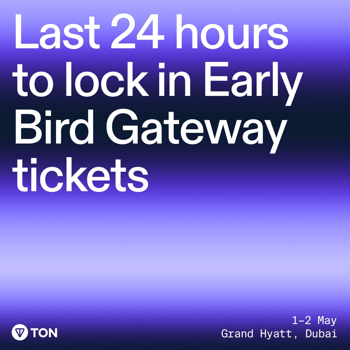 明天晚上9点(欧洲中部时间),早鸟票截止。 Gateway 2026,迪拜,5月1-2日。 仅剩24小时锁定名额。 👉