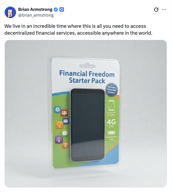 ⚡️ BRIAN ARMSTRONG: "We live in an incredible era where all you need is this to access decentralized financial services that can be used anywhere in the world."