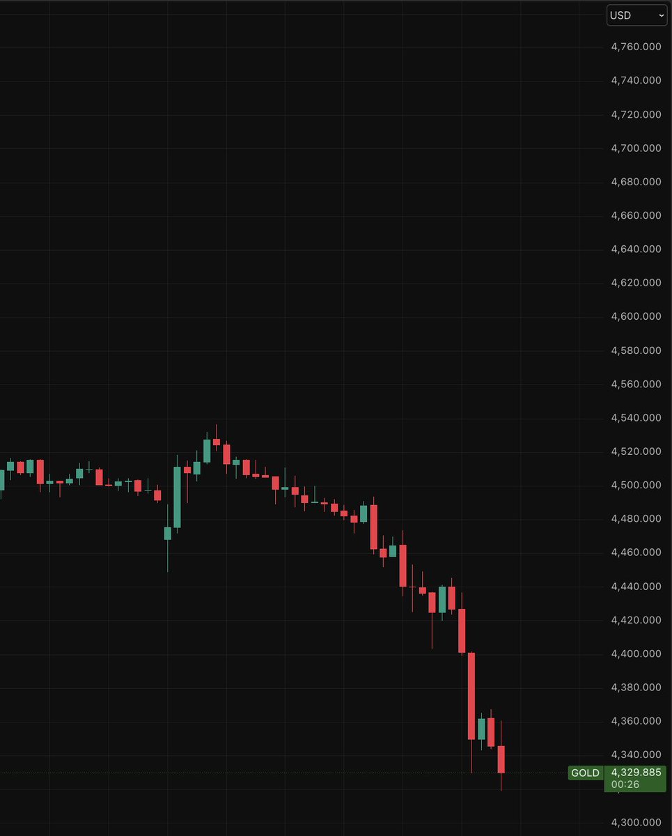 🚨 Alert: Gold prices have fallen below $4,350 per ounce, down more than 5% since futures opened, wiping out $1.5 trillion in market value in 3 hours.