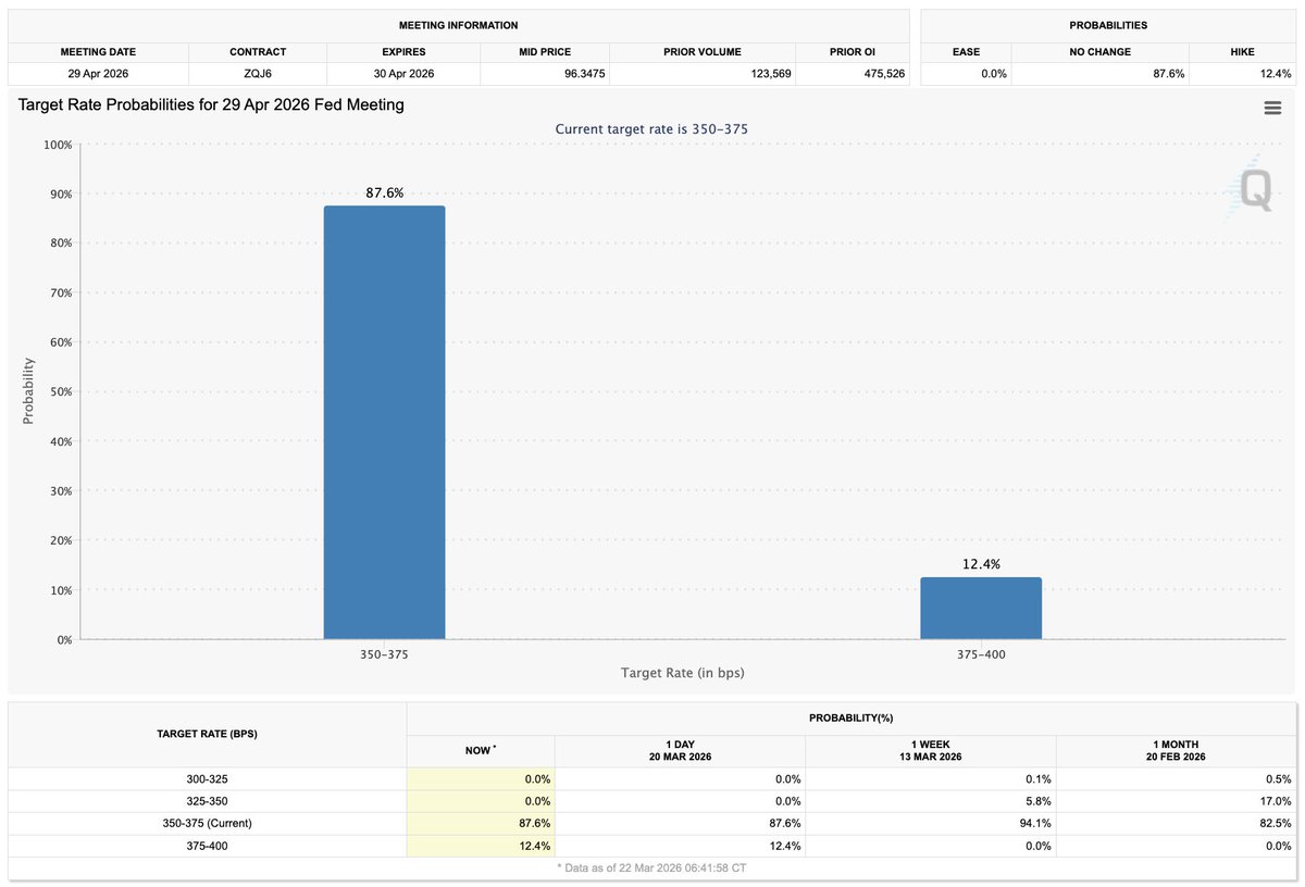🇺🇸 Latest news: CME FedWatch shows that the market expects a 12.4% chance of the Federal Reserve raising interest rates at its April 29 meeting.