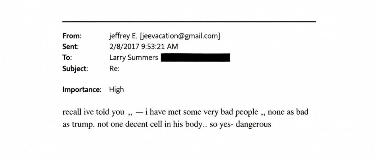Breaking news: Jeffrey Epstein said in 2017, "I've met some very bad people, but none of them are worse than Trump."