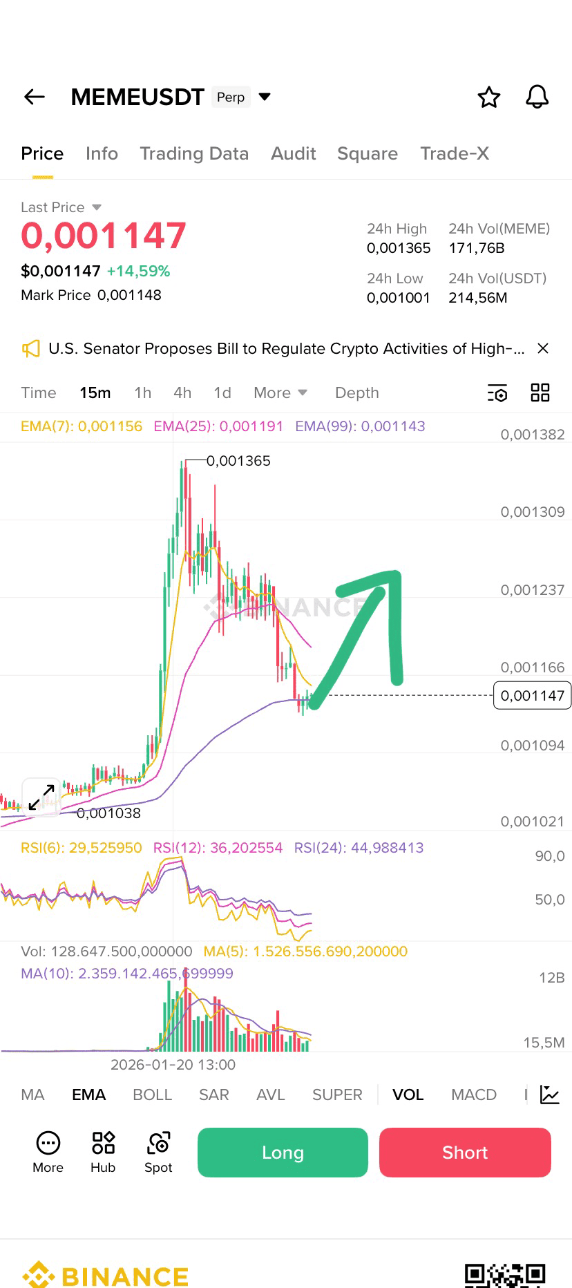 $MEME quickly digested the resistance level at $0.00130. This isn't a crash, but rather consolidation above the key support level of $0.00110. The RSI indicator has perfectly pulled back.