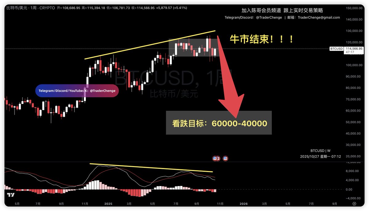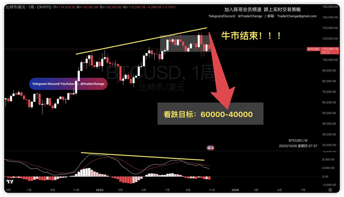 Bitcoin, on a weekly chart, the MACD death cross continues to expand, and bearish forces are continuing to unleash. The current market situation is critical, and we need to pay attention to two points.
