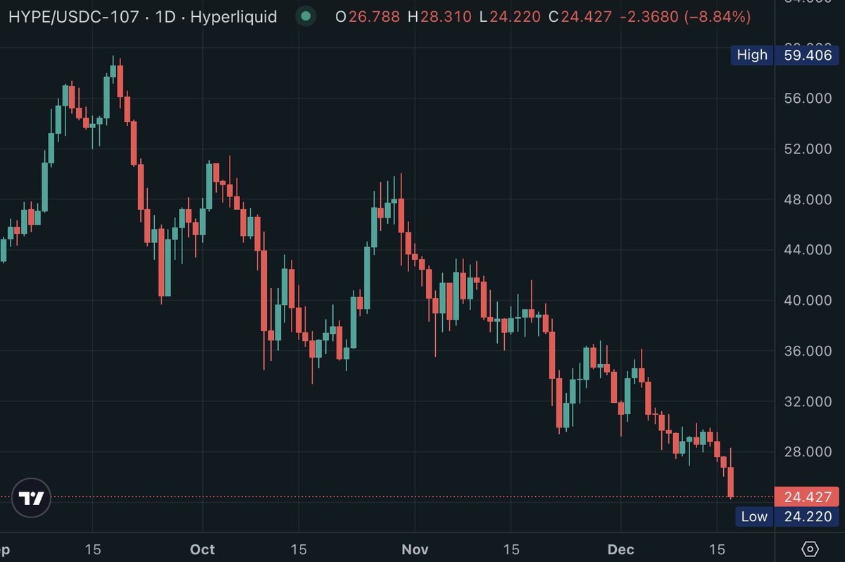 最新消息:$HYPE 较历史最高价下跌约 59%。