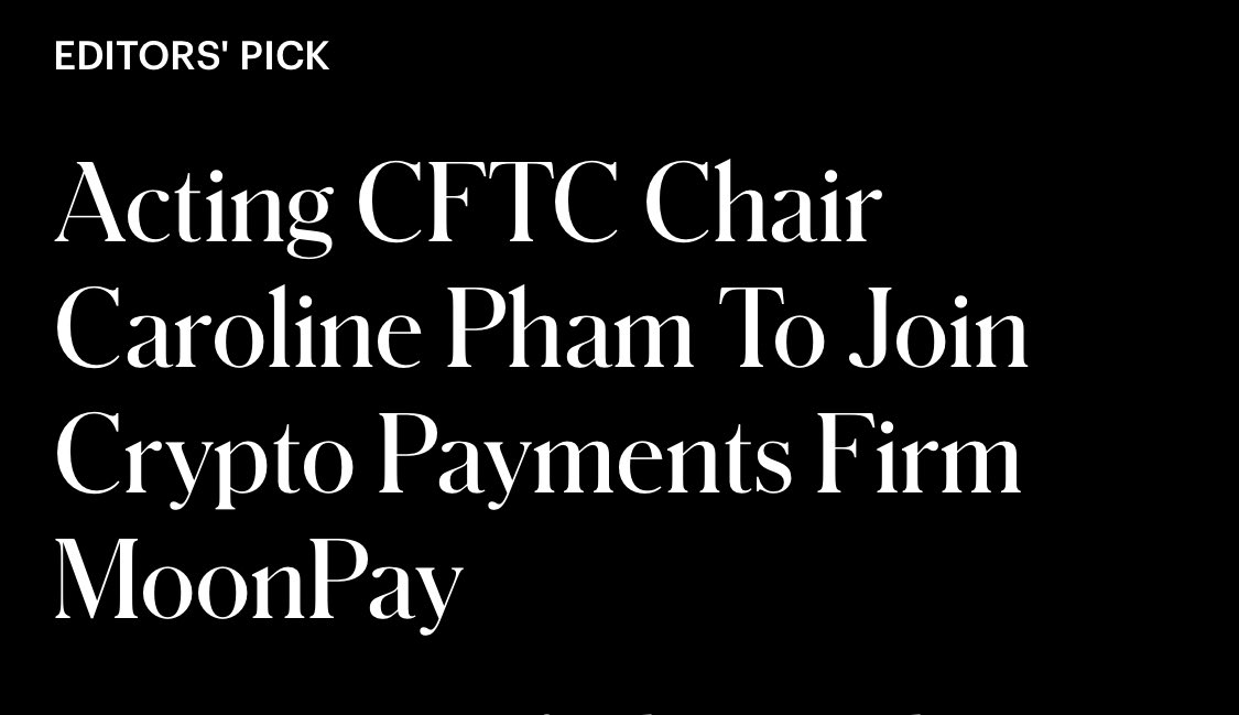 最新消息:美国商品期货交易委员会(CFTC)代理主席卡罗琳·范将加入加密支付公司Moonpay 来源: