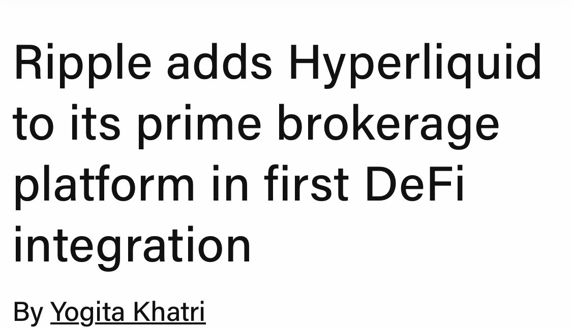 Breaking news: Ripple has integrated HyperLiquid into its prime brokerage platform, marking its first integration of a DeFi service—THEBLOCK. Source: