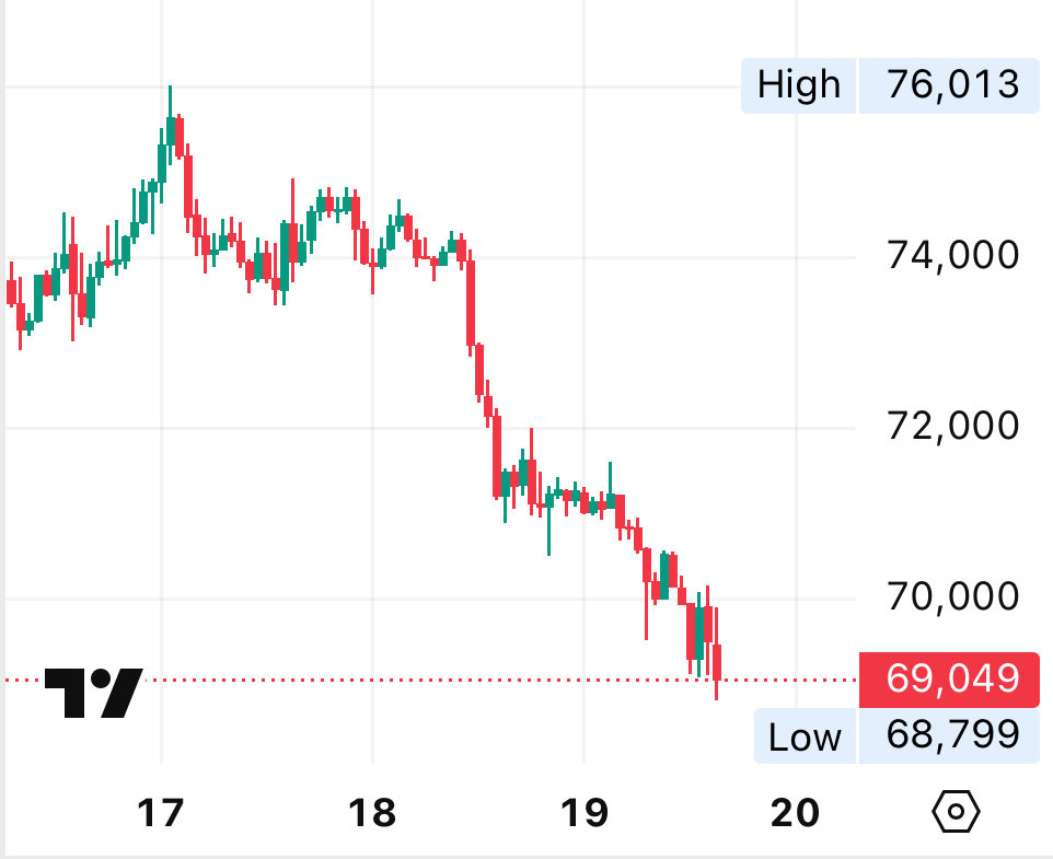 Breaking news: Bitcoin price falls below $69,000