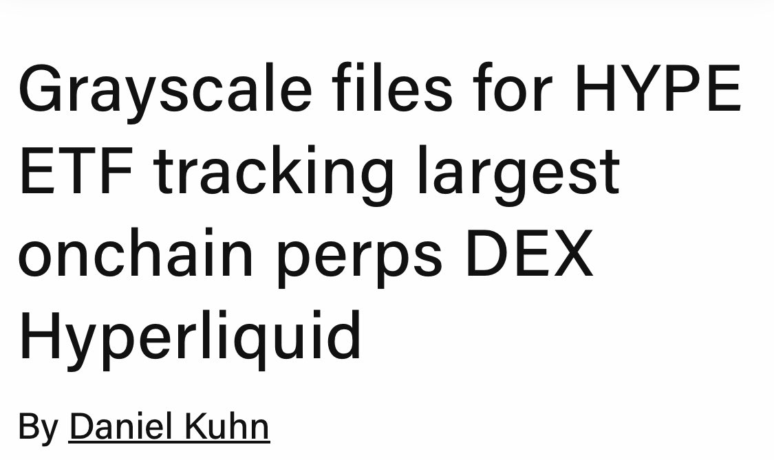 Breaking News: Grayscale Files Tracking Popular ETFs on HyperLiquid, the Largest On-Chain Trading Platform - THE BLOCK Source: