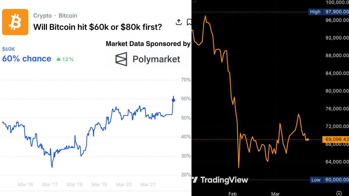 Breaking news: Polymarket predicts that there is a 60% probability that Bitcoin will break through $80,000 before reaching $60,000 in 2026.