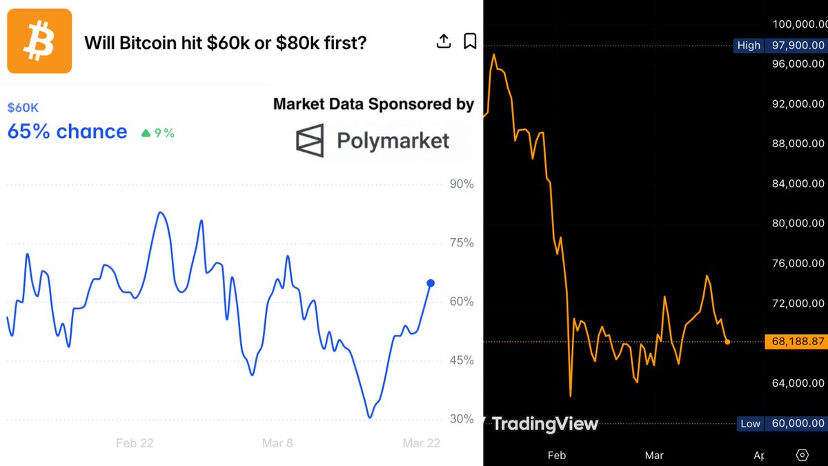 Breaking news: Polymarket predicts that the probability of Bitcoin breaking $80,000 before reaching $60,000 in 2026 has risen to 65%.