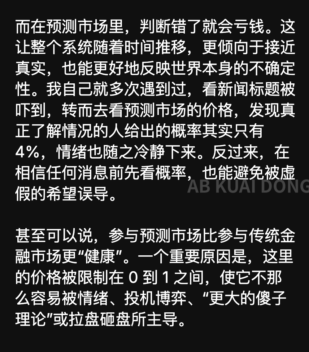 Because social media and news tend to exaggerate headlines and spread emotions more readily, prediction markets, where people wager real money, produce results closer to reality and are less susceptible to distortion by emotions and speculation.