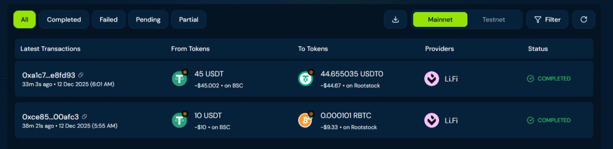 I used Dzap to transfer my BSC USDT to Rootstock RBTC and swap in one transaction to complete the mission.