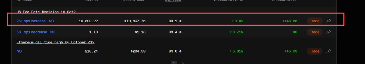 on @opinionlabsxyz, there's a 99.1% probability of buying 10892 units ("no") on the 25% rate hike.