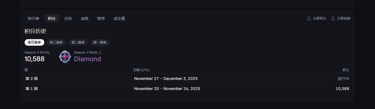 #opinion 今天查了一下分数 单号只有0.031分 100个号也就3分。太卷了吧 我刷的是Will Satoshi move any Bitcoin in 2025? 和US Fed Rate Decision in Dec? 300U的交易额,2U的手续费。 看@zhudi32 大佬讲的是 1.风险定价是最关键的 50-50的池子优先观察 2.如果交易能盈利应该也会有不错的权重 PS:注意检查订单区间有没有机器人的虚假报价,避免资金亏损 所以决定下周改变策略