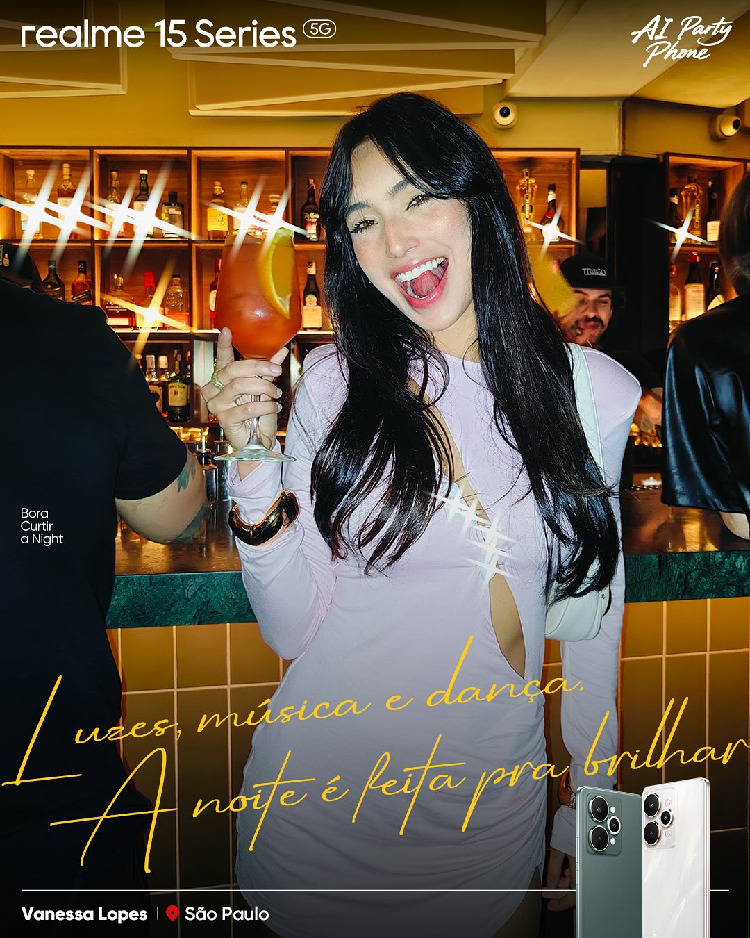 Vem comigo curtir uma Girls' Night SP✨ It's worth mentioning that the realme 15 series is a brand new mobile cellular phone, a brand new AI party phone with triple cameras and Real Moments. 📸😍 @realmebr.official #realme #realme15series #aipartyphone #boracurtiranight #realme15pro #vivaorealemcadamomento