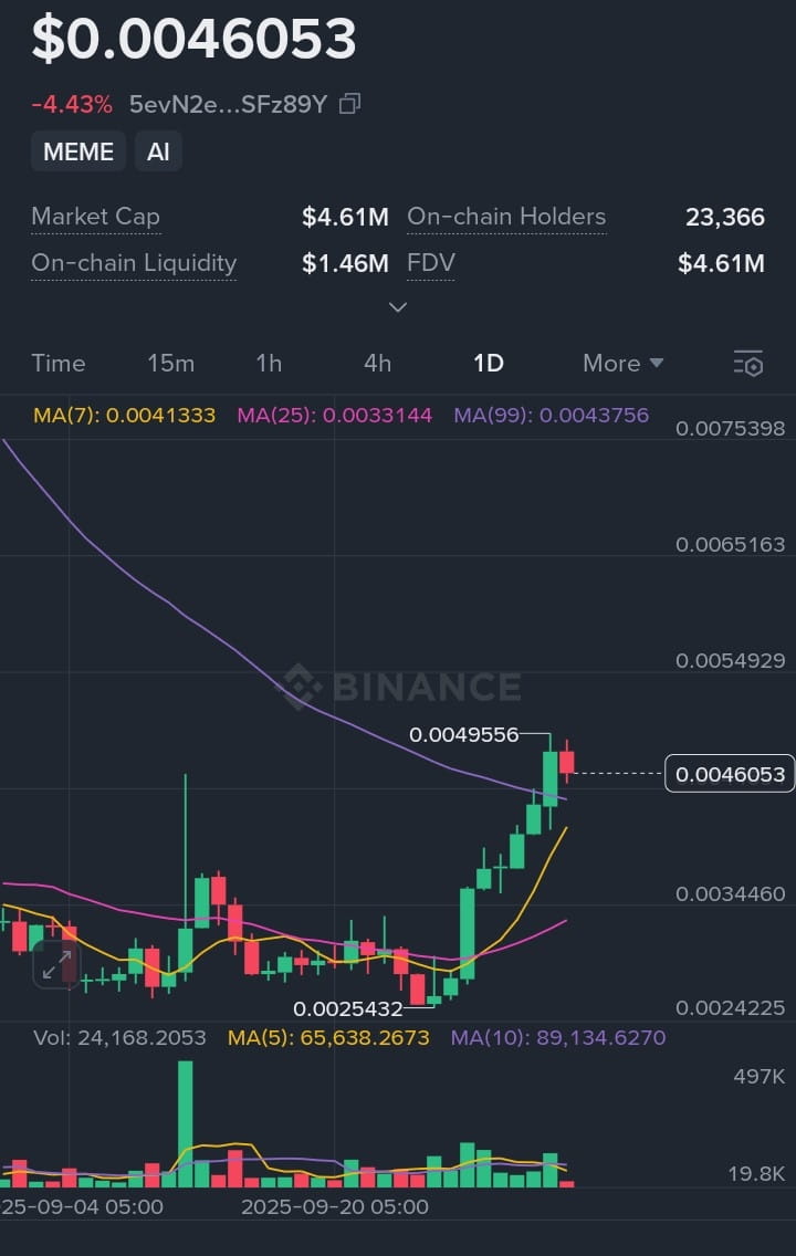 * Entry price (approximately): \mathbf{0.0042} (near MA(7) at \mathbf{0.004133})