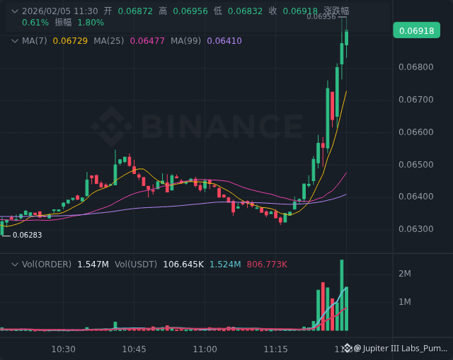 $ORDER 🚨 ORDER Price Alert - Up 3.29% - Reason: