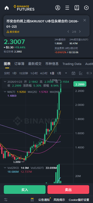 $ZRO's breakout was accompanied by an increase in open interest exceeding 80 million and significant volume, suggesting more likely entry by major funds than a simple short-selling spree. The price did not quickly fall back after the breakout but instead formed a tight flag pattern at high levels, indicating very light selling pressure. As long as the price can hold the support level near the previous breakout high of 2.20, the market structure remains bullish, and the probability of further upward continuation is higher.