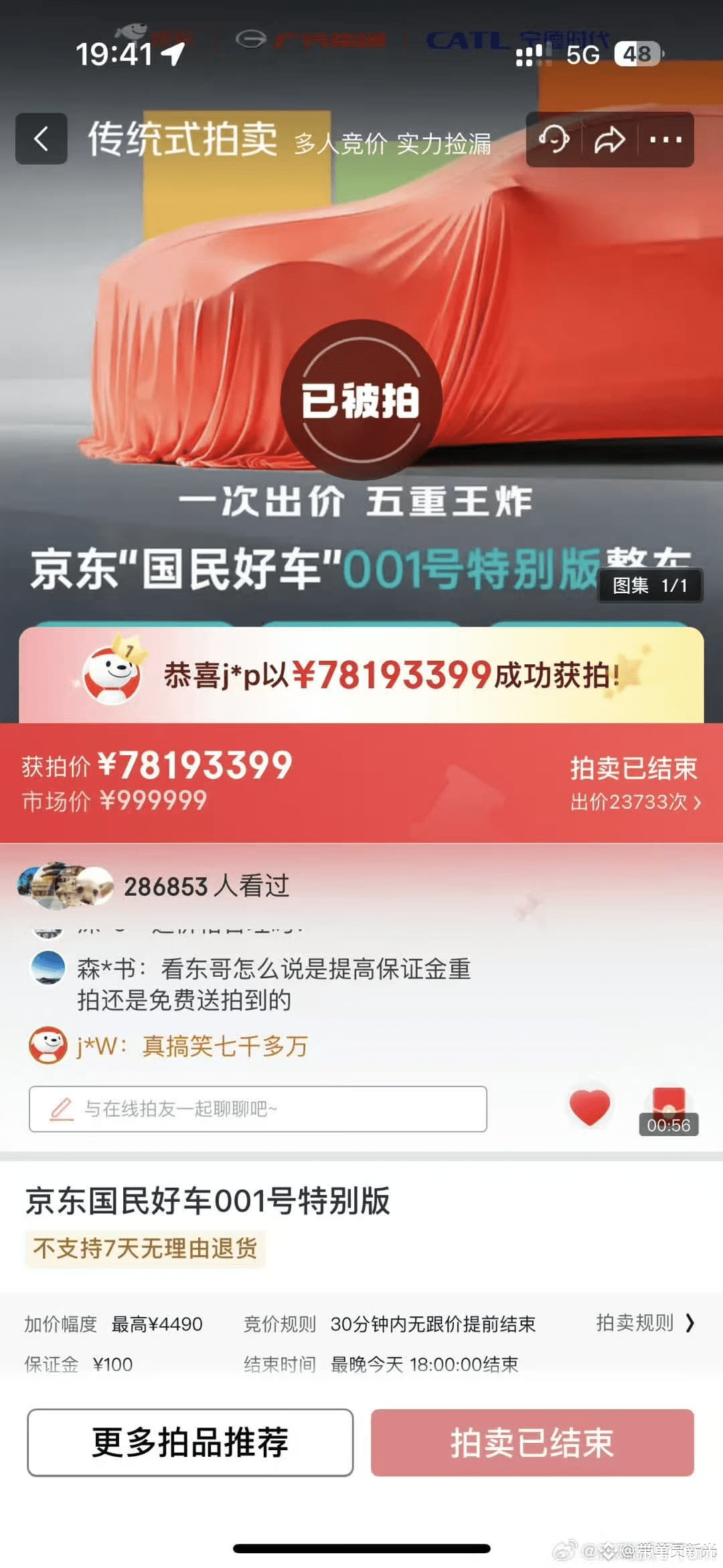 不装了,摊牌了。 国民好车001号被我拍下来了。 小小8千万不到拿下。😂 #美联储支付创新大会