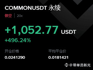 $COMMON 依旧是砸穿,没事看什么多啊!!!多单亏损反弹转空,拿下1000刀弥补多单的亏损小赚。 从投研逻辑上看,这个币其实没有明显的抛压结构,流通盘也不多,按理说庄家有足够空间去拉一波。但没想到狗庄完全没格局,上线直接砸盘。我原本的计划是等它先拉一波再空进去,结果行情直接掉头,所以我在反弹到 0.0241 的位置做空。整体看下来,这类 web3 社区币,不能对它有太高预期。 持续操作山寨,还有位,想跟的来!!! #内容挖矿升级 {future}(COMMONUSDT)
