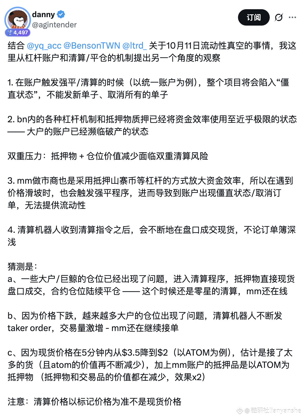 After reading so many explanations of what happened on October 11th, none of them addressed the key point: why liquidity completely vanished. Finally, I've found a reasonably plausible explanation.