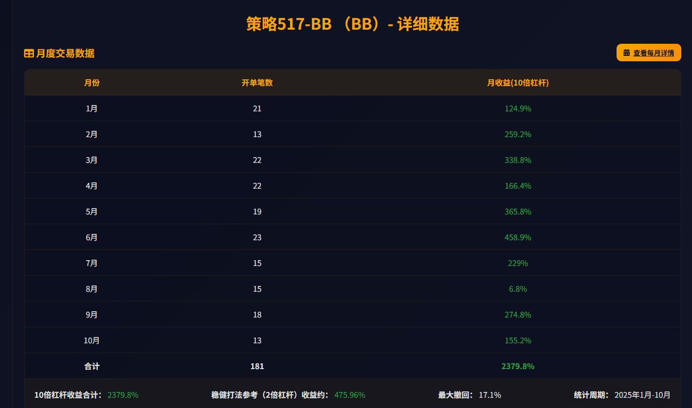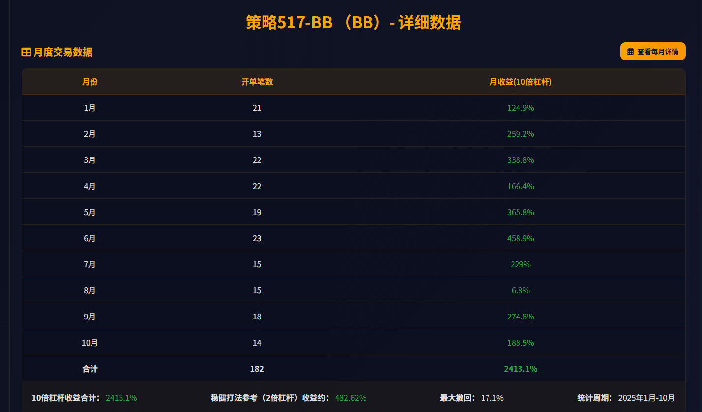 - 10x leverage return 2413.1% | Maximum drawdown 17.1%