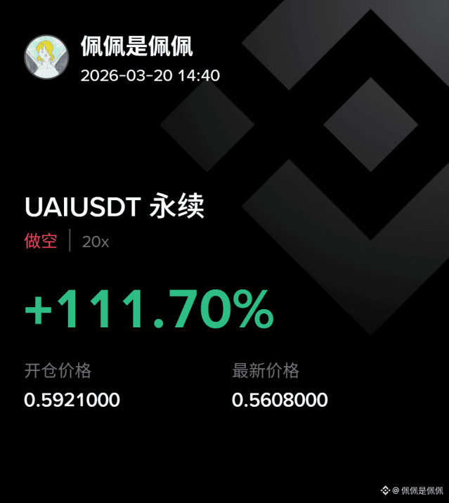 UAI, 20x Short Opening price: 0.5922100 → Current price: 0.5608000 Profit: +1111.70% Nothing much, just randomly caught a pullback (sarcasm intended). There are always two types of people in the market: those who chase the highs and those who short early. Waiting for the next structure, no rush.