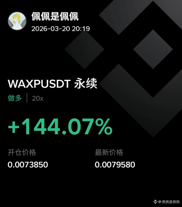 WAXP took off today! My 20x long position went from 0.007385 to 0.007958, a staggering +144.07% increase! One wave and I couldn't stop—leverage is just that amazing! Keep watching the market, who's next? #WAXP