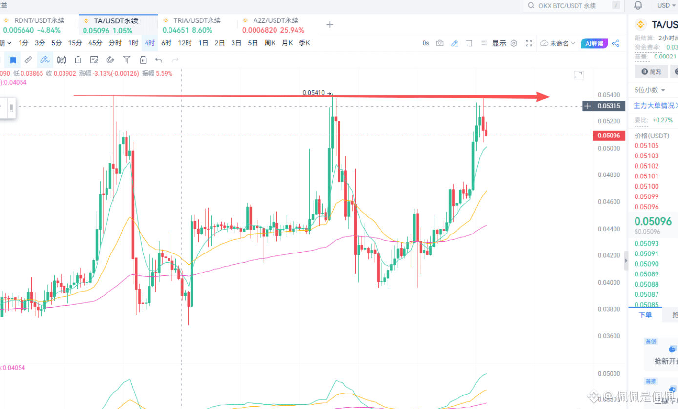 Shorted TA, stop loss at new high. As the saying goes, "Even with three sticks of incense burning above your head, you'll be wounded, if not dead." Target below 0.043.