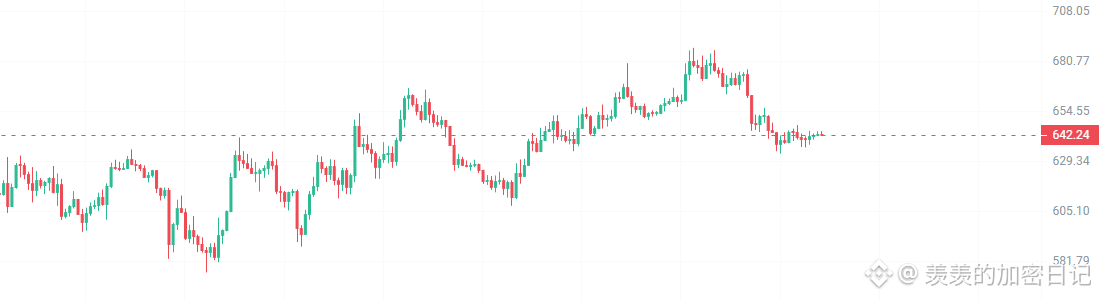 $BNB (BNB) is still in a downtrend on the 4-hour chart. It has rebounded to around 645 and is currently consolidating in a triangle pattern. A break below this range would warrant shorting.