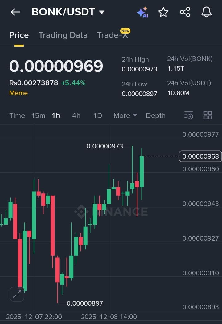 $BONK {spot}(BONKUSDT) 在经历了5.44%的强劲上涨后,目前走势稳定,正向0.00000970区域发起冲击,该区域买家持续保持兴趣。凭借强劲的日内成交量以及持续尝试守住0.00000960上方的阻力位,只要价格维持在0.00000940上方,其上涨势头依然强劲。若价格持续突破0.00000973,则可能开启下一轮上涨行情。 目标价位 0.00000990 0.00001015 0.00001035 #BONK #solana #MEME