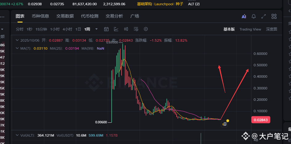 $ALT, a Layer 2 solution focused on Rollup-as-a-Service (RaaS), is currently priced at approximately $0.02837, a slight increase of 1.84% over the past 24 hours. Its market capitalization is approximately $127 million, and its 24-hour trading volume reached $21.28 million, indicating stable market activity but no explosive growth.